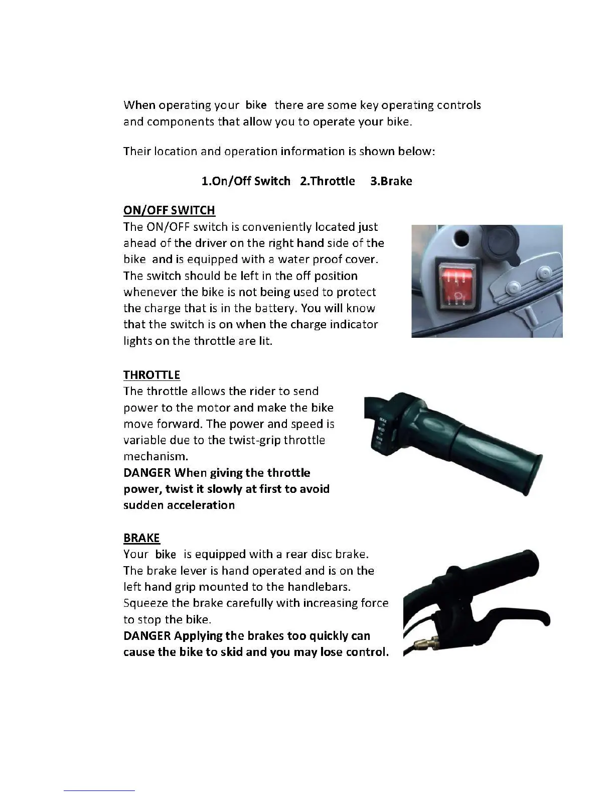 SSR ABT-E350 - On;Off Switch Operation; Throttle Operation; Brake Operation