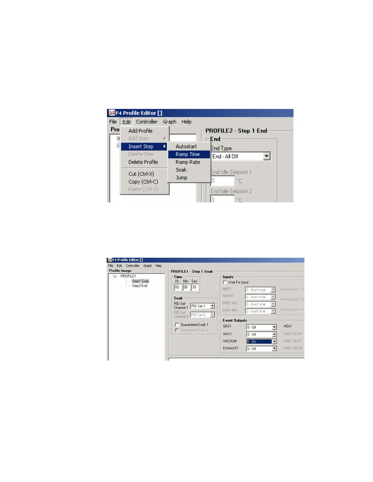 4. To add a step to a profile (for example a profile with a vacuum valve on