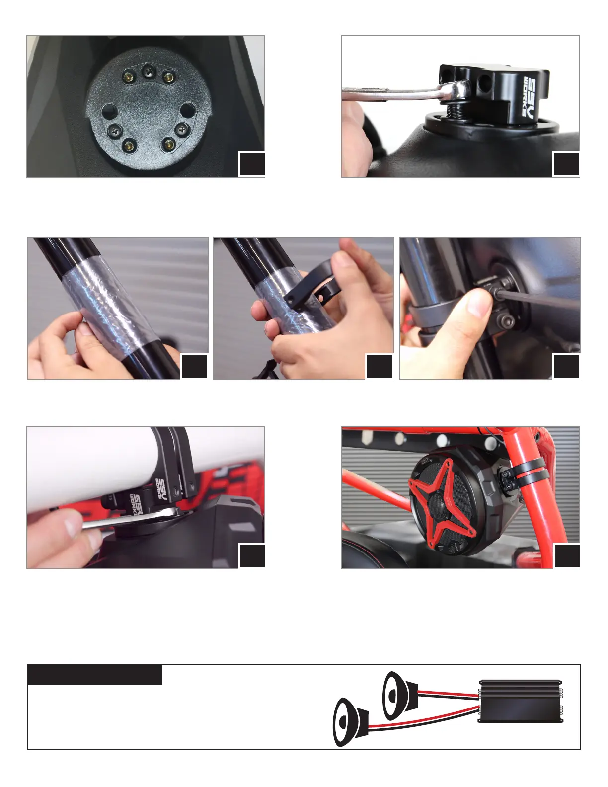 secure to the clamps using the two (2) M6 allen socket head bolts and washers with a 5mm allen key.