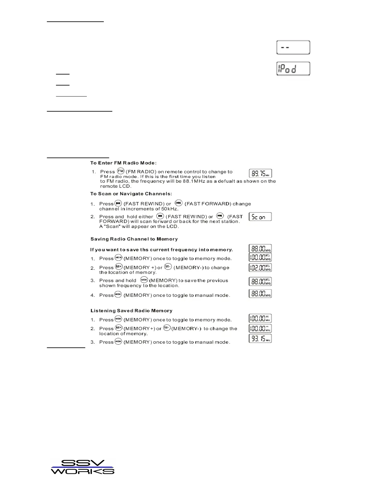 NOTE: If you are listening to iPod mode and you change your source to Radio or Standby