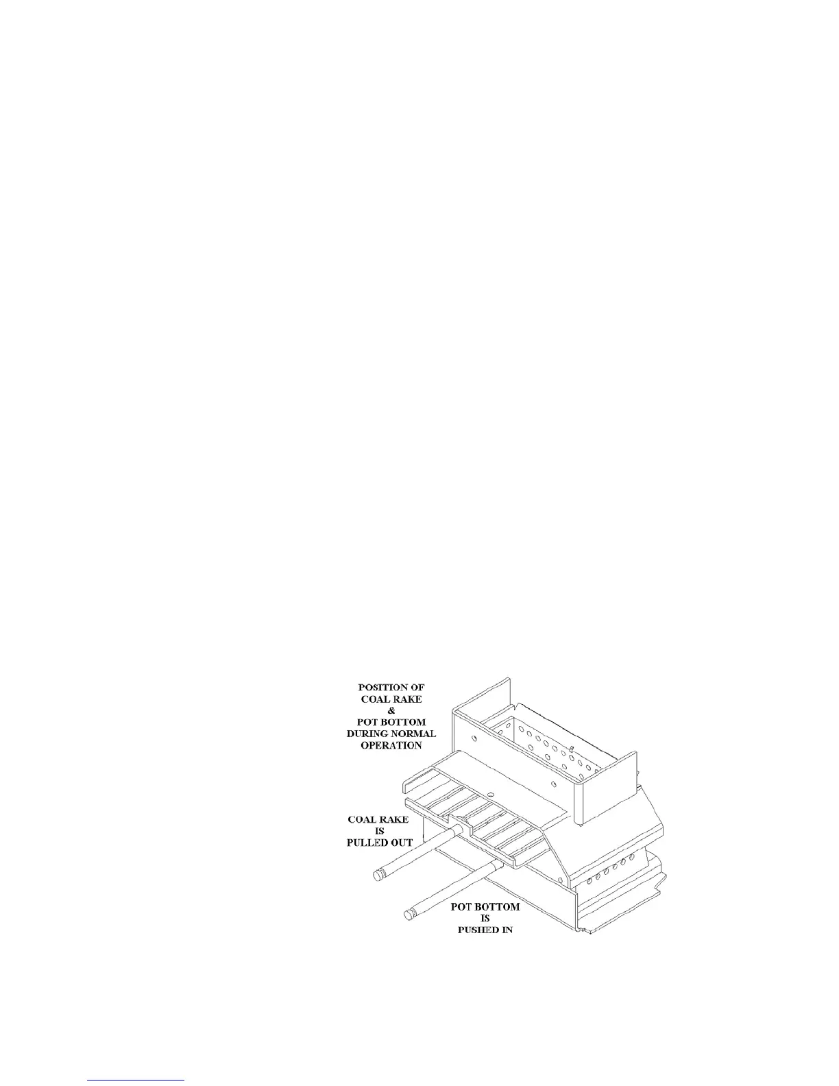 Note the position of the Coal Rake Rod and the Slide-out Pot Bottom Rod during