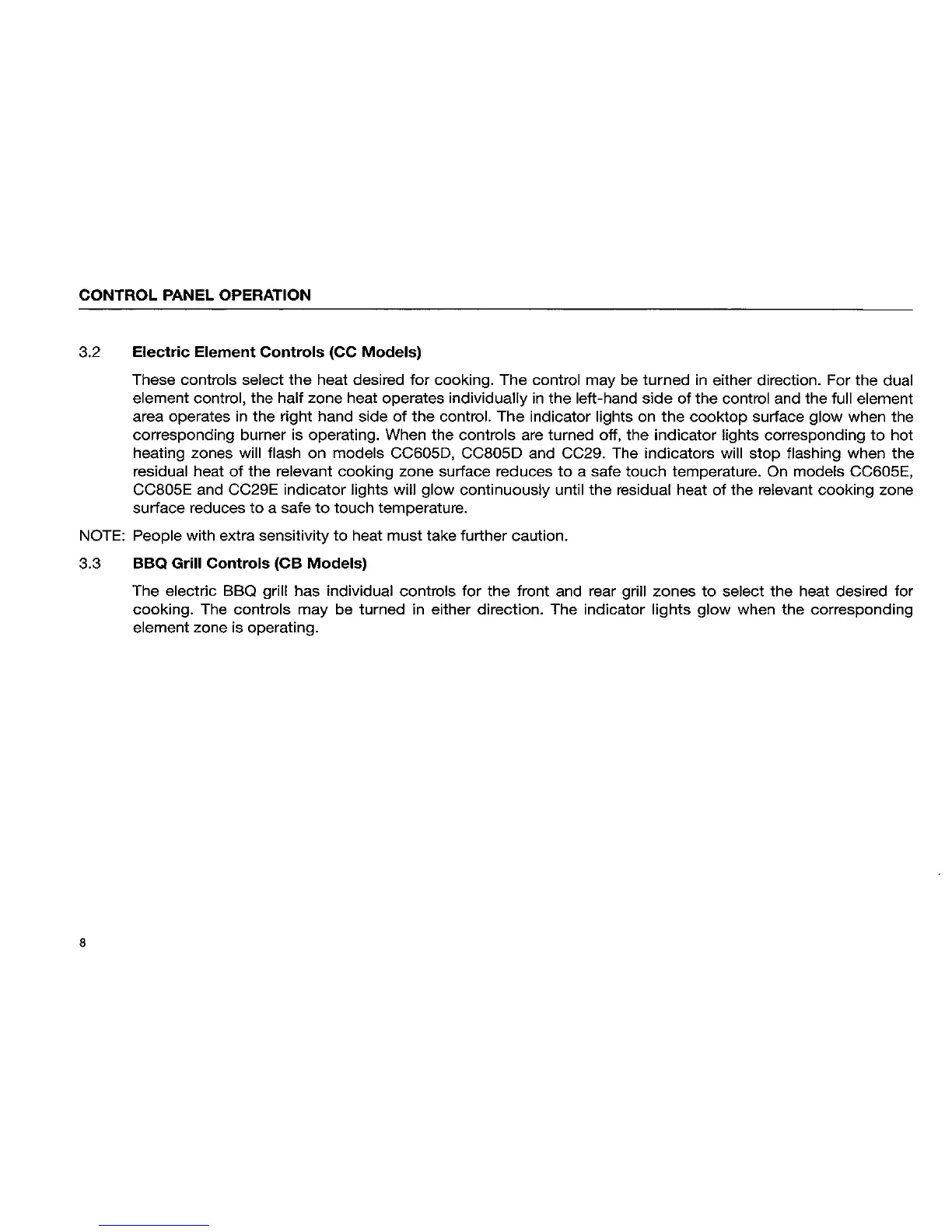 St George CC29/E - Electric Element Controls (CC Models); BBO Grill Controls (CB Models)