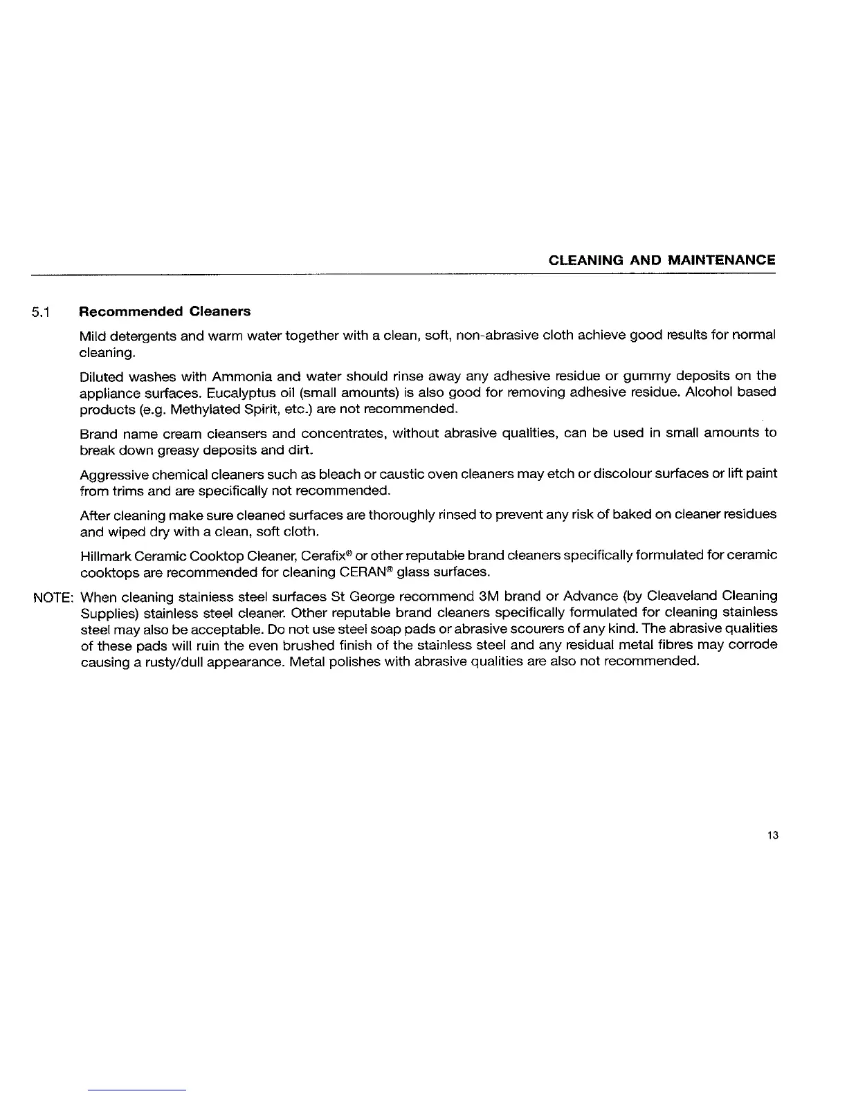 St George CC29/E - Recommended Cleaners