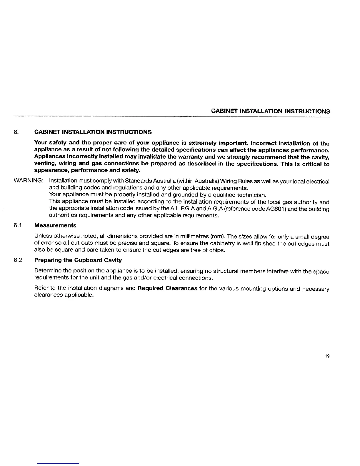 St George CC29/E - Cabinet Installation Instructions; Measurements; Preparing the Cupboard Cavity