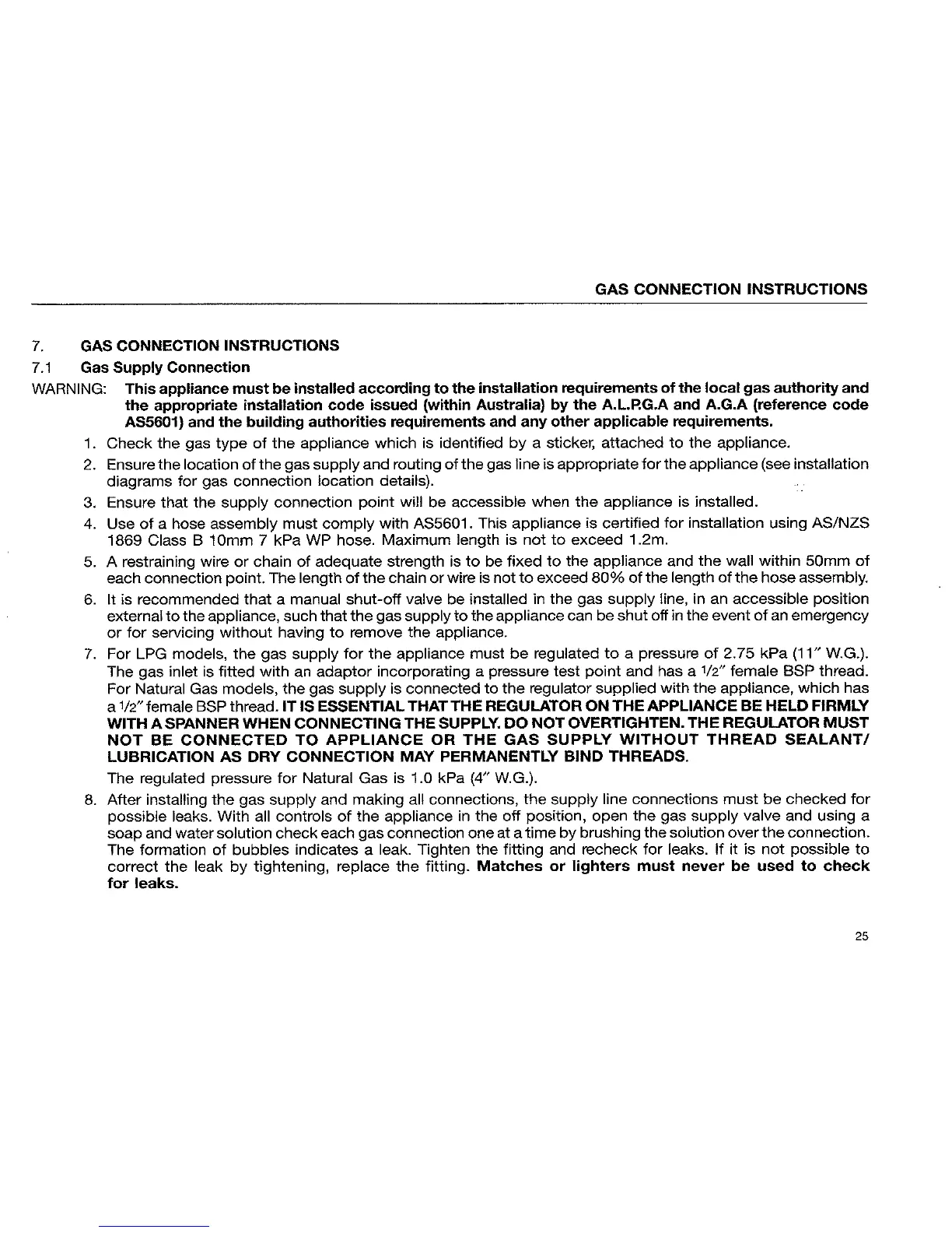 St George CC29/E - GAS CONNECTION INSTRUCTIONS (CG Models) Gas Supply Connection