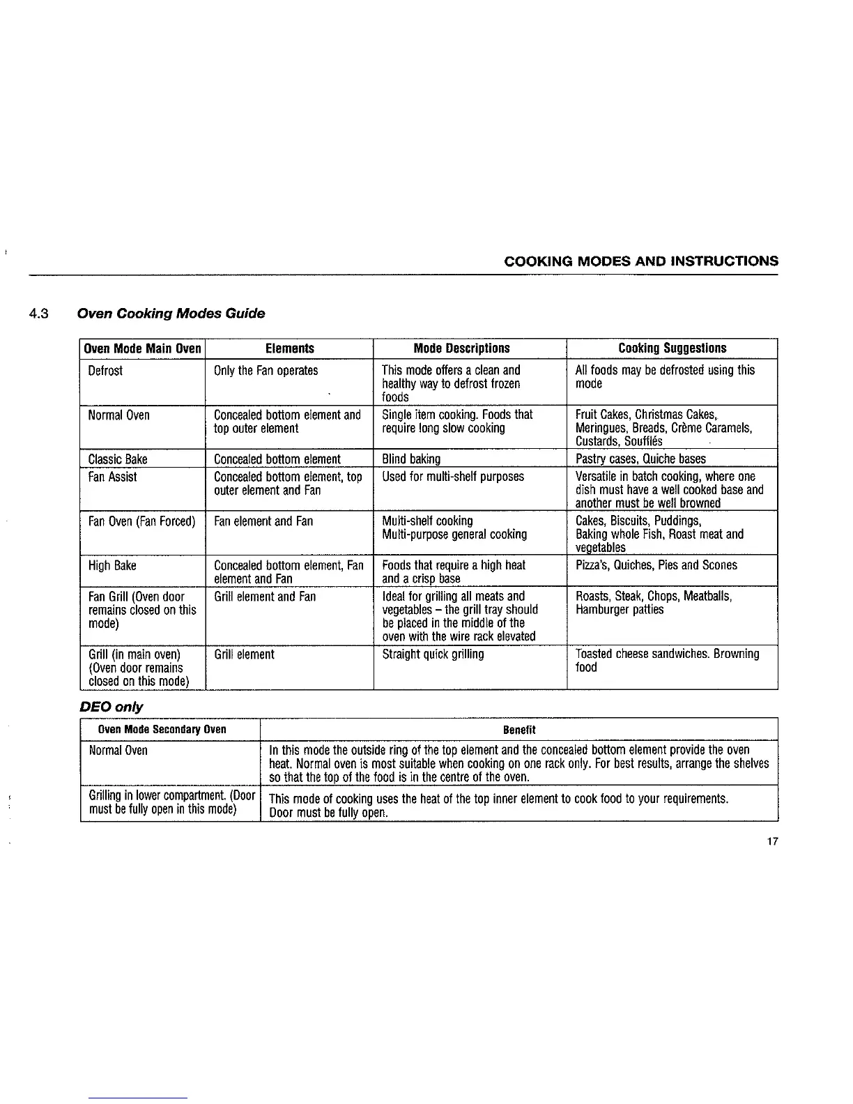 St George DEO2B - Oven Cooking Modes Guide