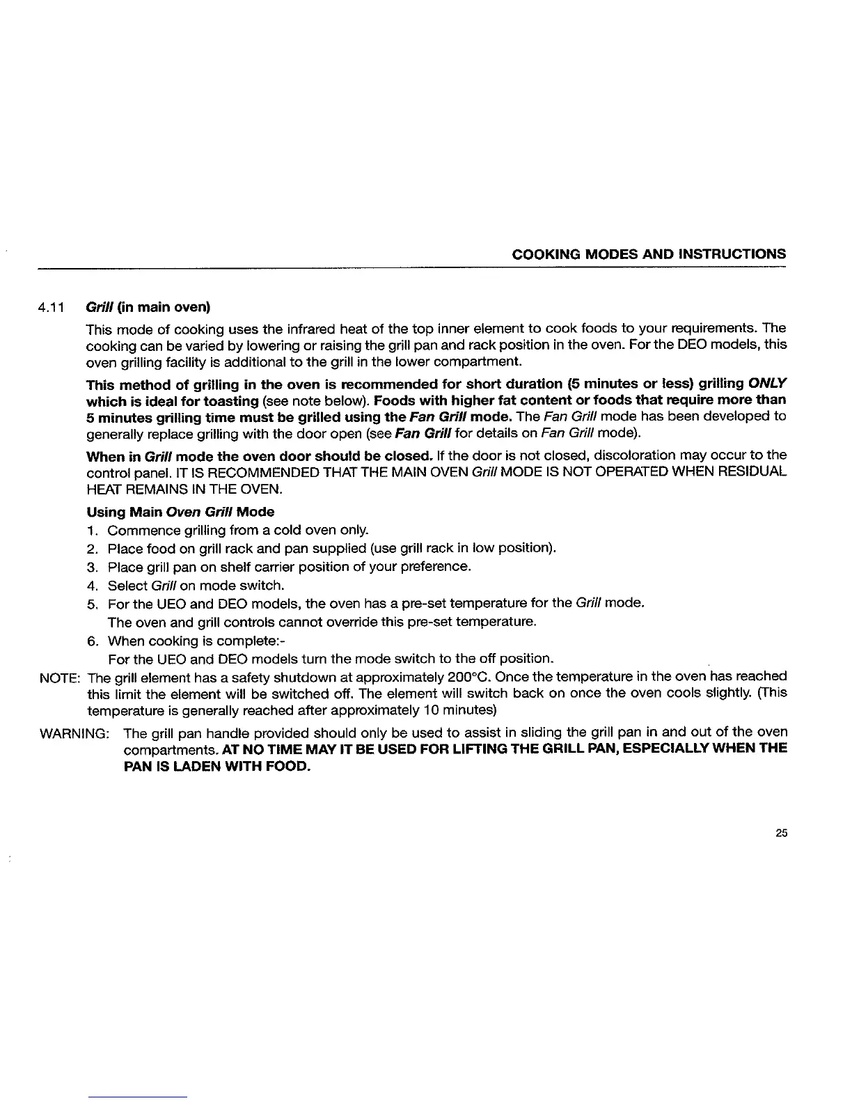 St George DEO2B - Grill (in main oven)