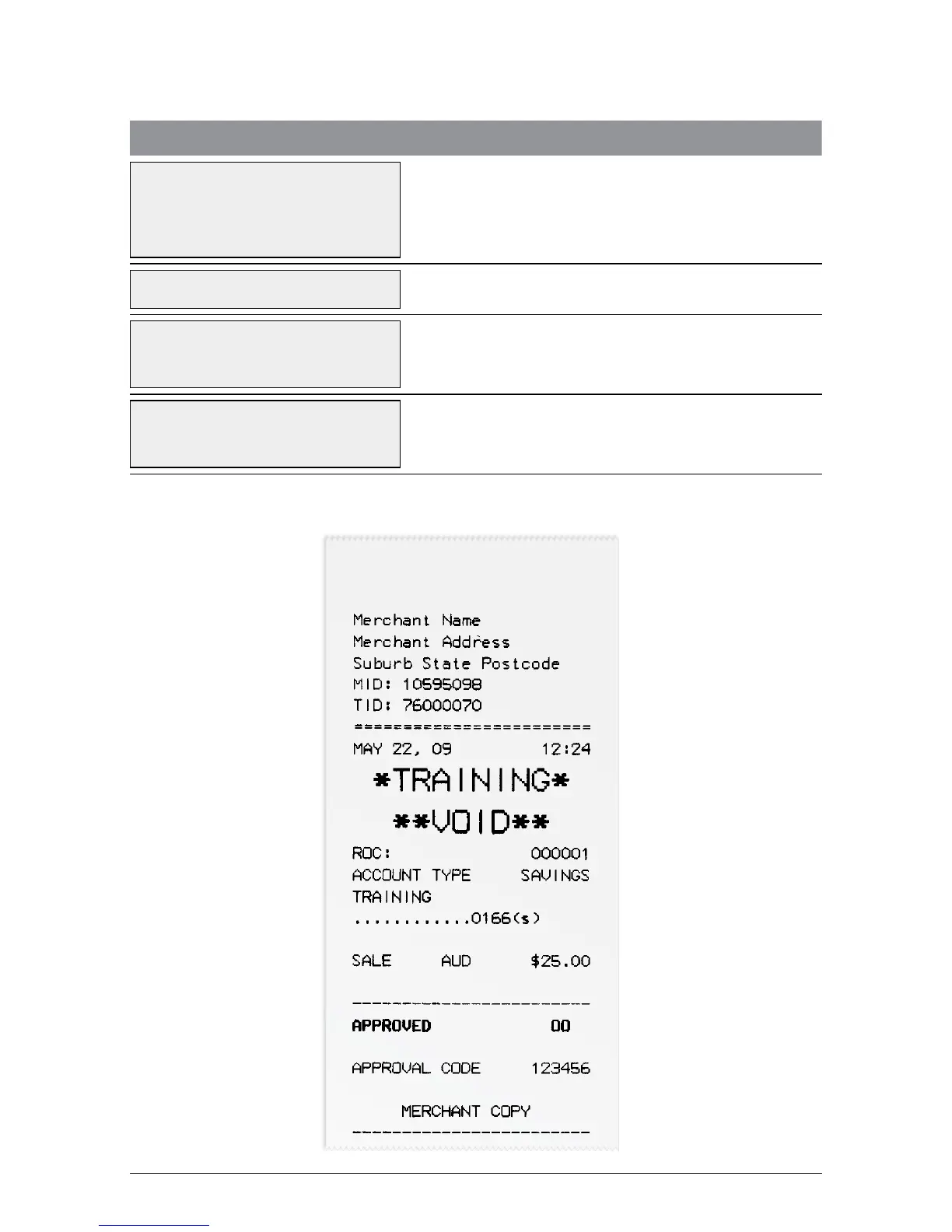 Receipt in Training Mode