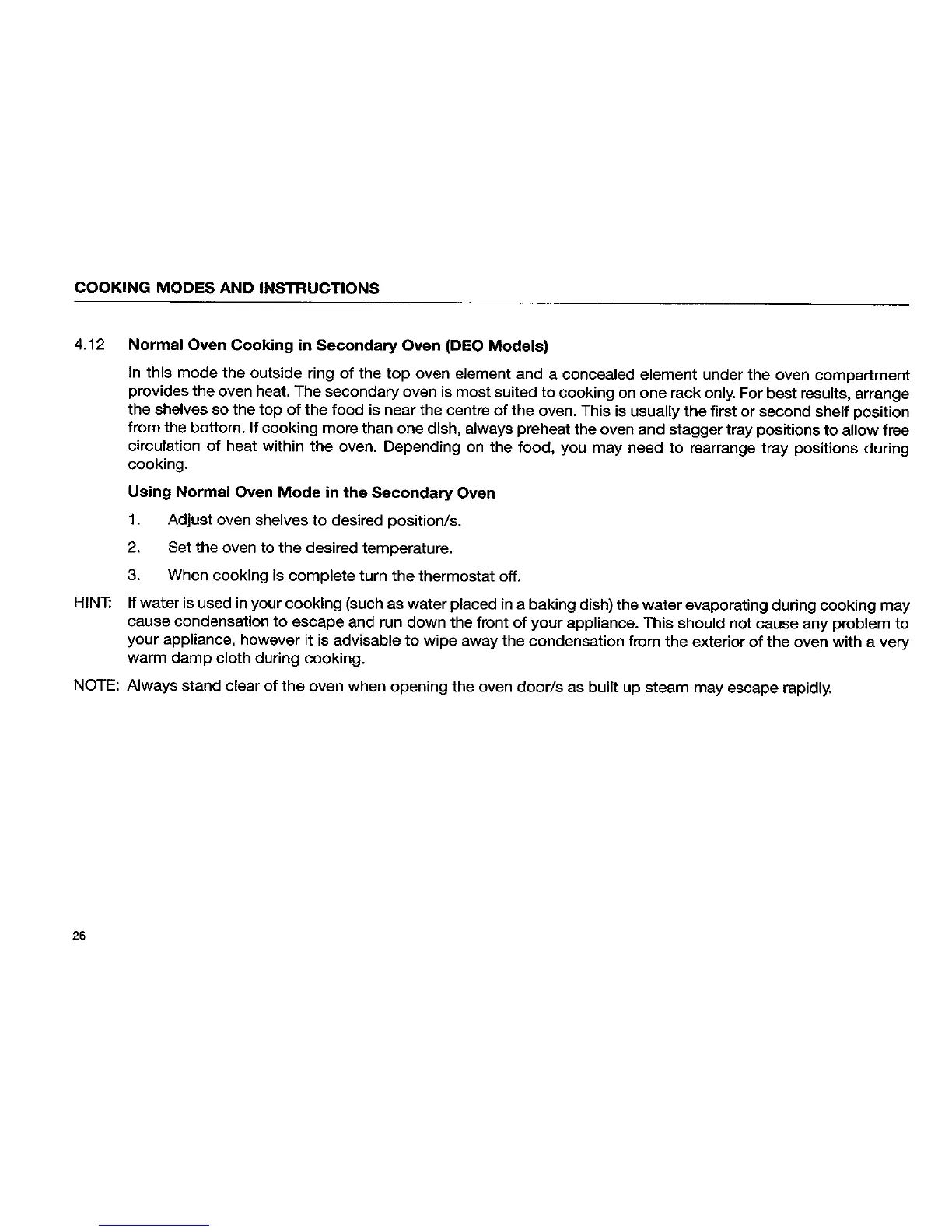 St George UES2B - Normal Oven Cooking in Secondary Oven (DEO Models)