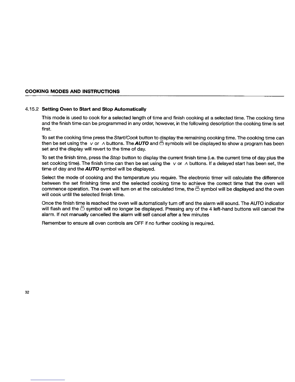 St George UES2B - Setting Oven to Start and Stop Automatically