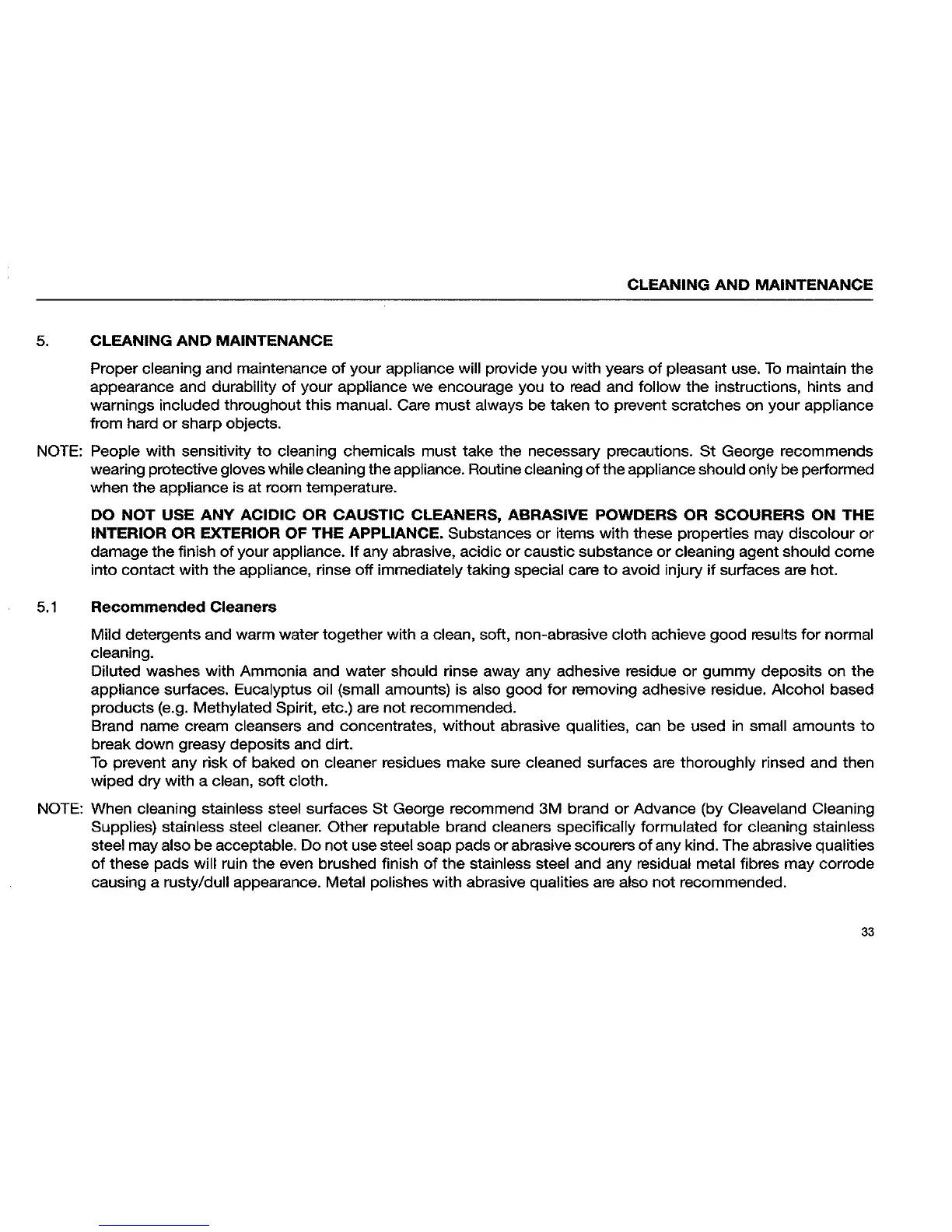 St George UES2B - Cleaning and Maintenance; Recommended Cleaners; Routine Cleaning