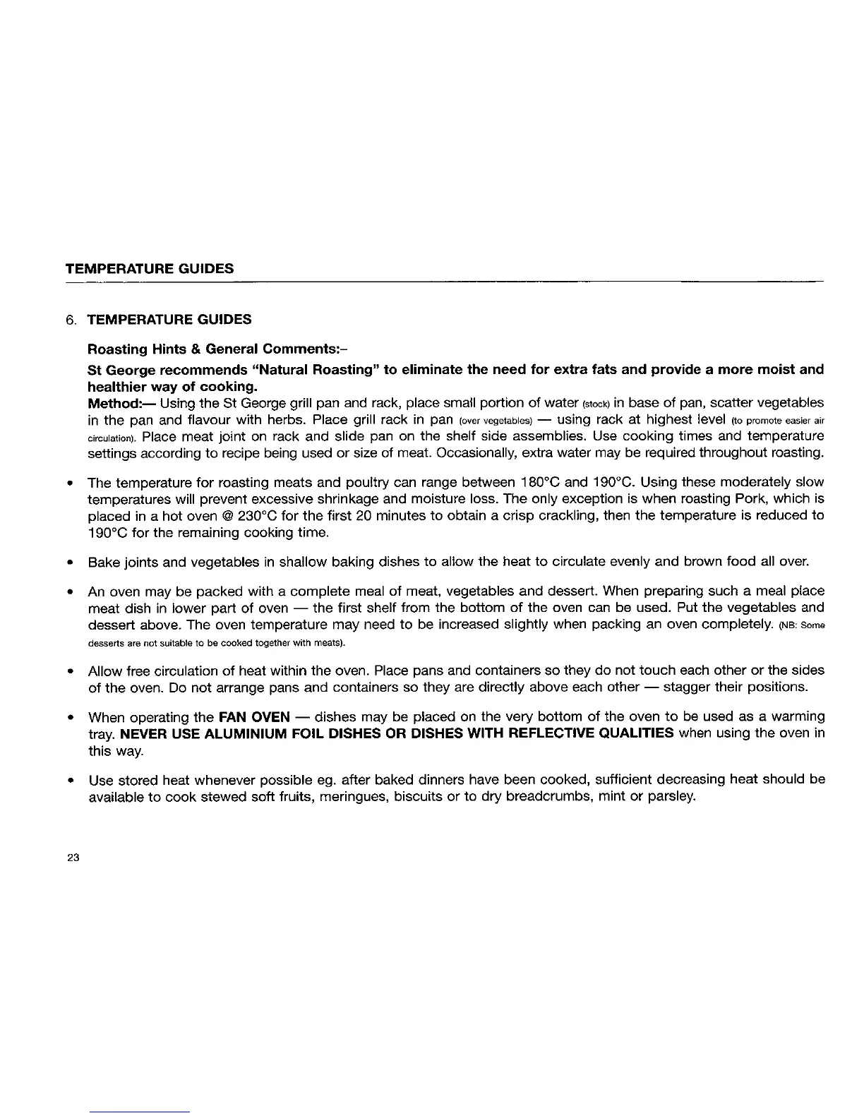 St George WEOM7 A - TEMPERATURE GUIDES; Roasting Hints and Comments