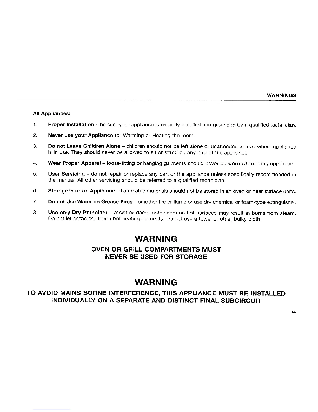 St George WEOM7 A - GENERAL APPLIANCE SAFETY WARNINGS