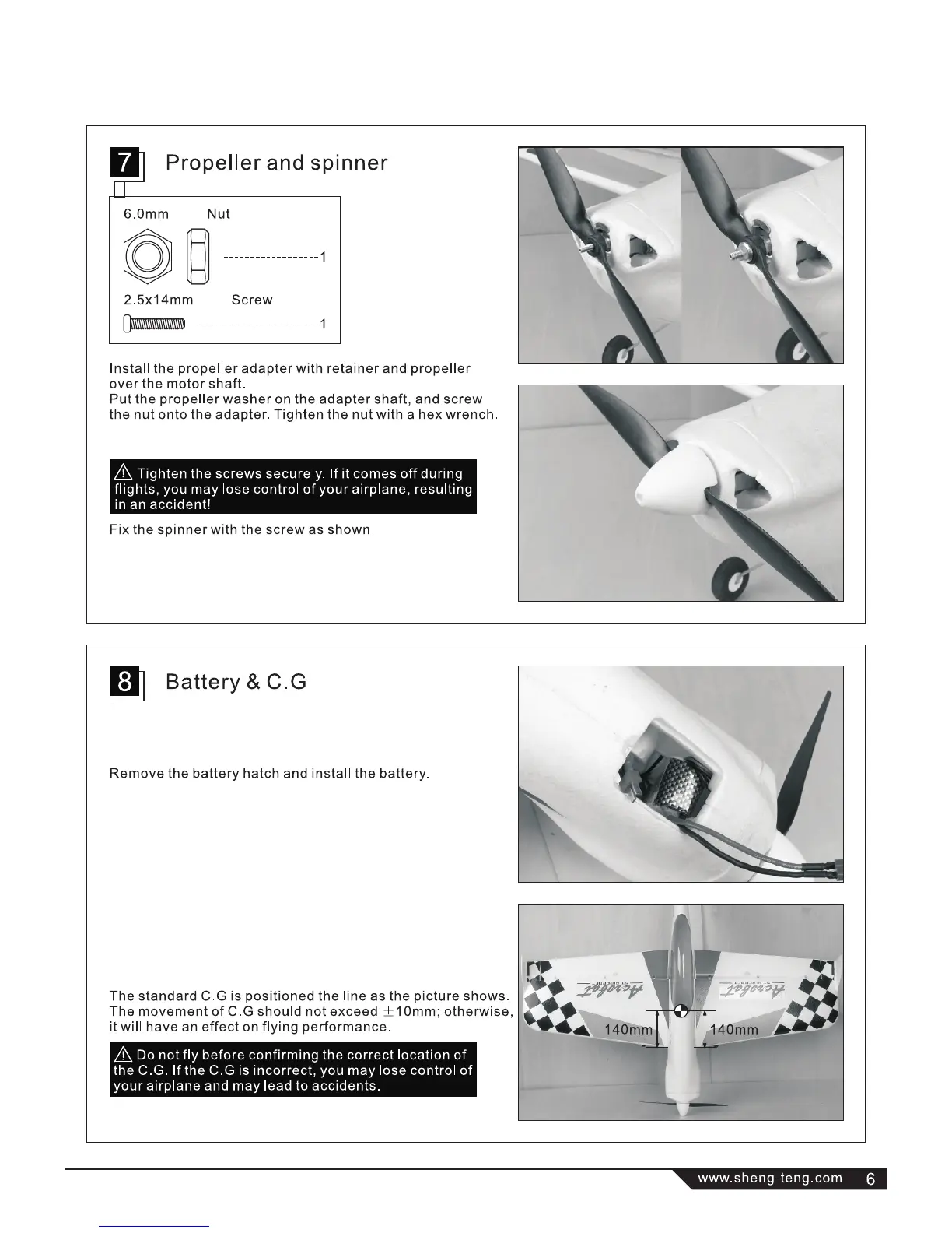 st model acrobat - Propeller and Spinner Installation - Step 7; Battery and C.G. Setup - Step 8