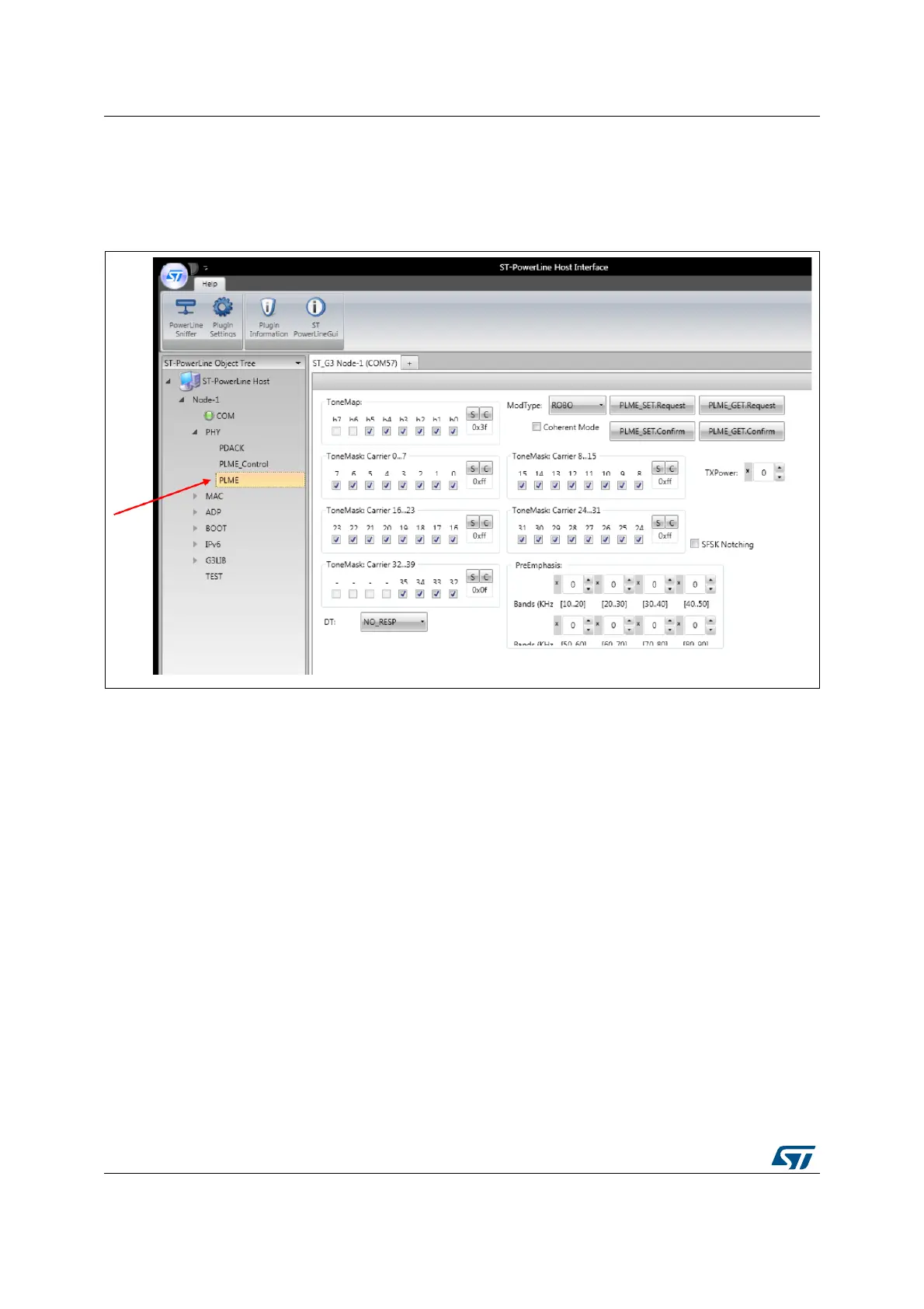 The physical sublayer management entity menu allows setting the transmission parameters,