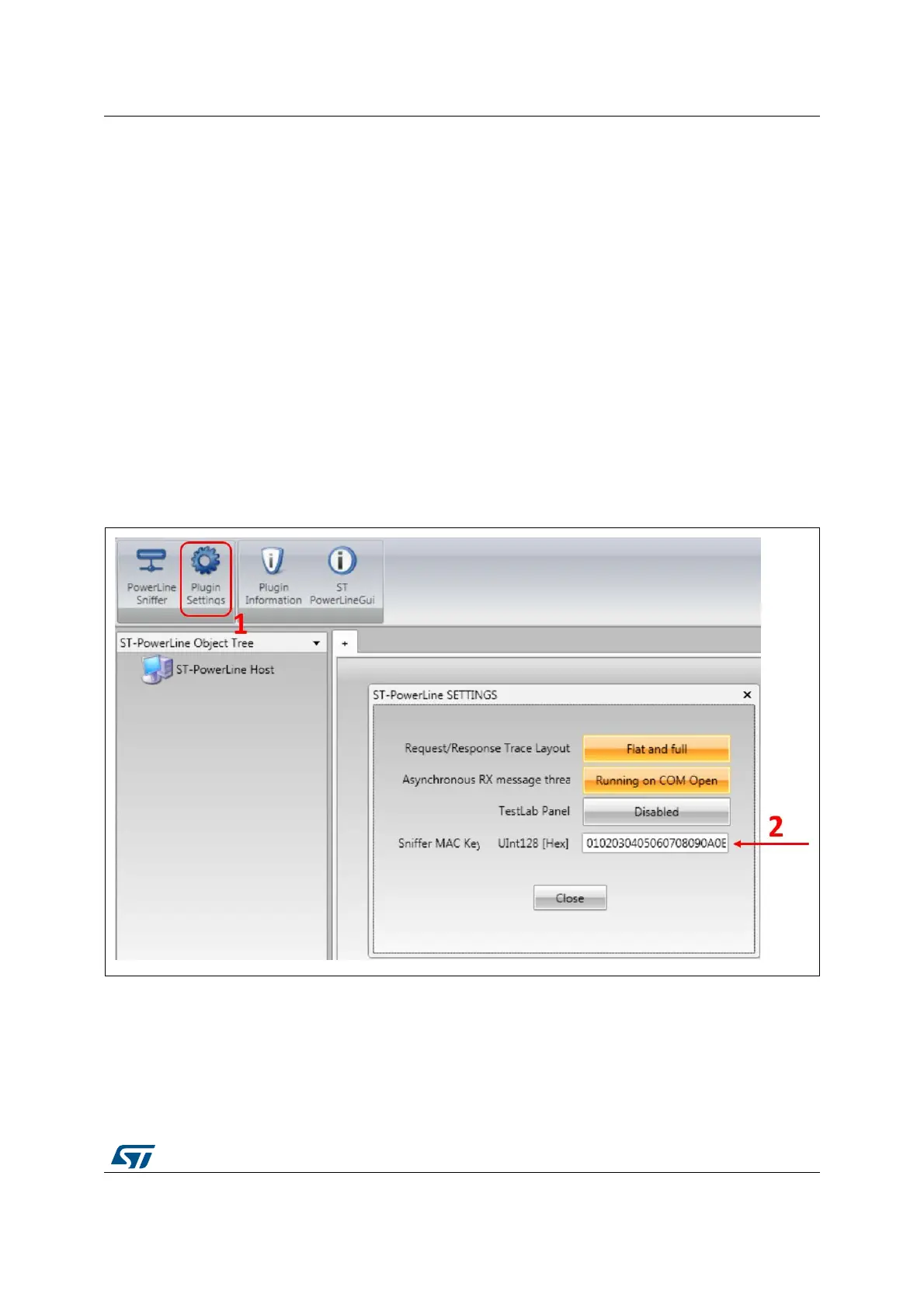 In order to activate the Sniffer tool the PowerLine Sniffer button (1) has to be pressed, as