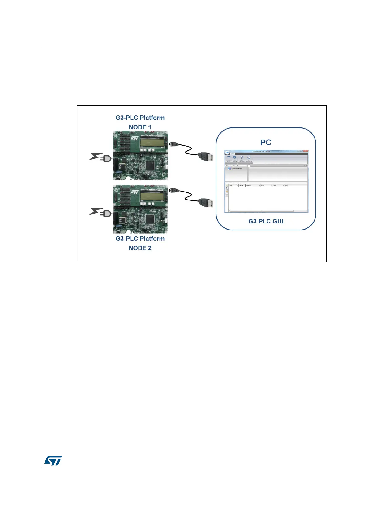 The first action to perform with the G3-PLC GUI is to add two nodes. Click on the small