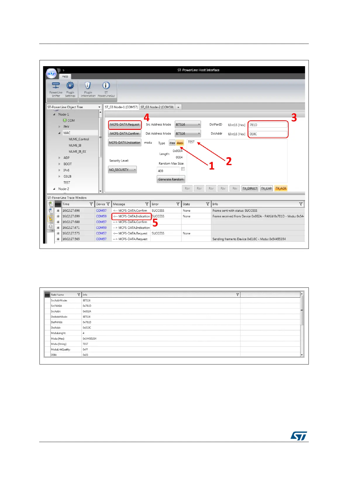 To check that the transmission was successful, look for the MCPS-DATA.Indication