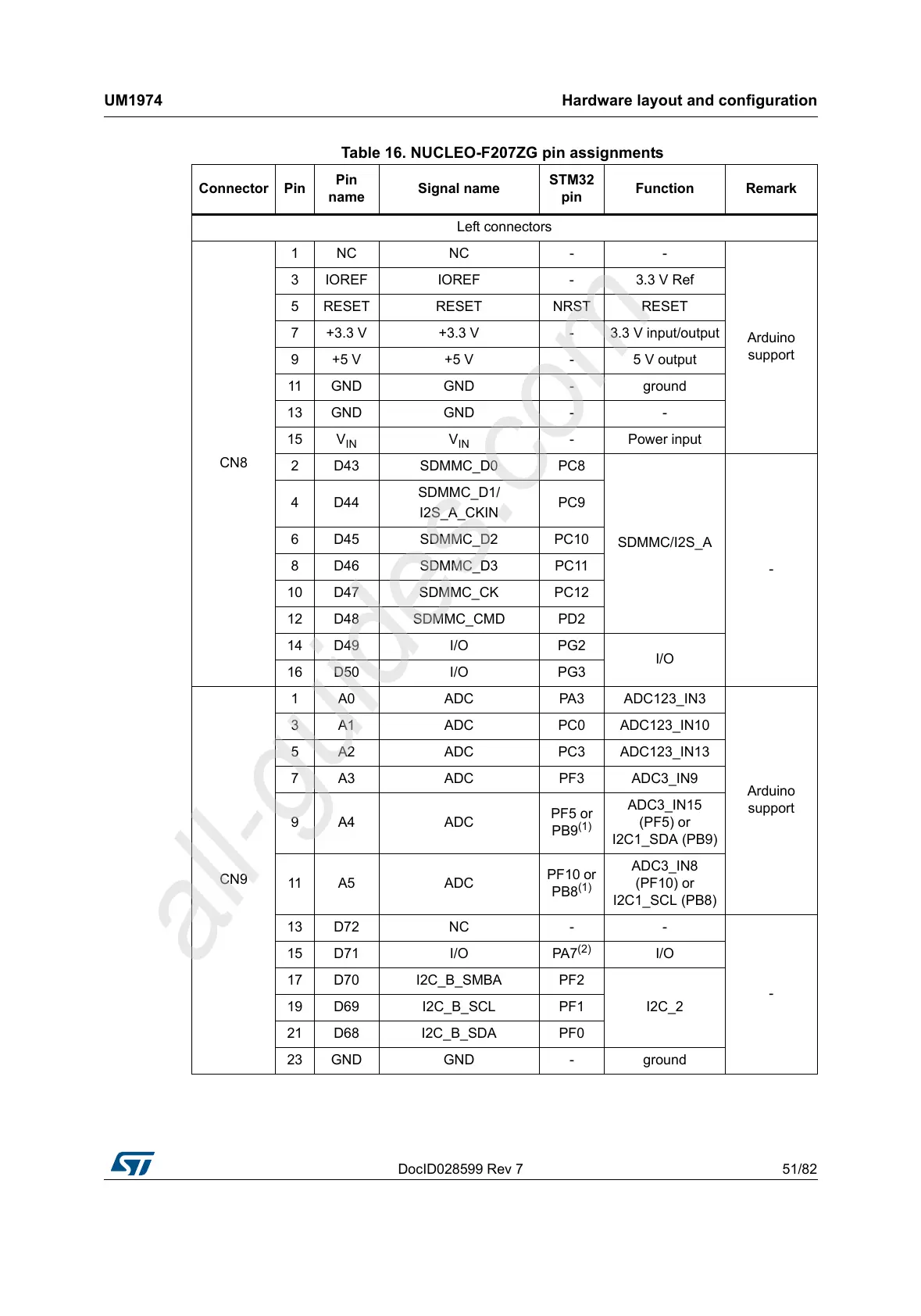 ST NUCLEO-F746ZG - Table 16. NUCLEO-F207 ZG Pin Assignments