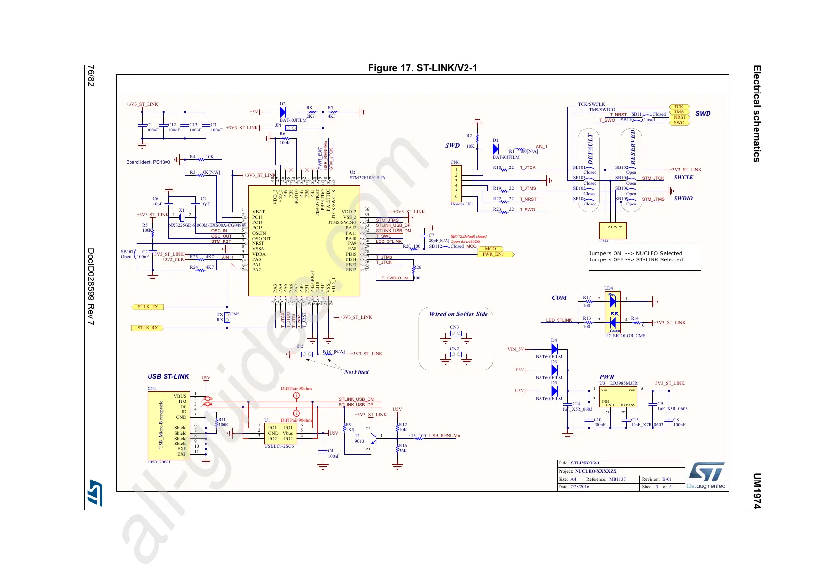 ST NUCLEO-F746ZG - ST-LINKV2-1 Circuit Schematic