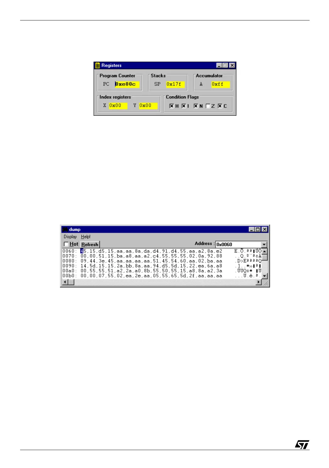 toolbox Windows/Dump option. A window opens, showing the contents of the whole memory.