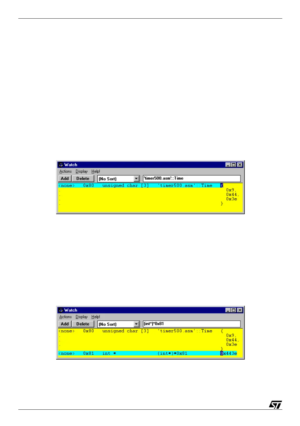 It is also possible to watch any data in memory that is not declared in the source files, or to dis-