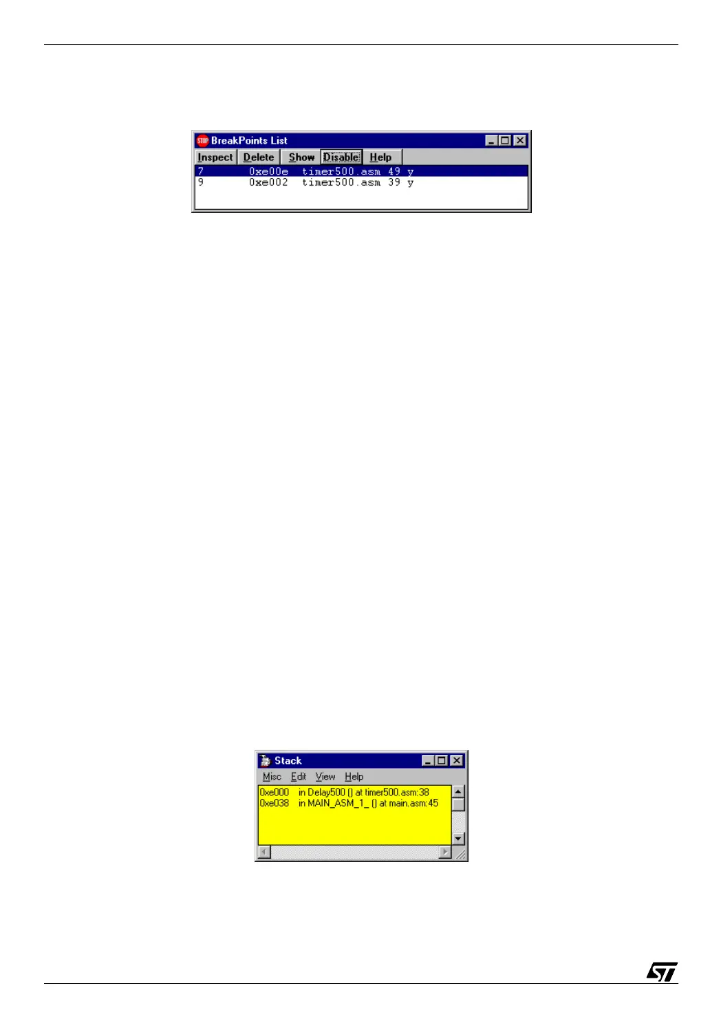 for the program to stop. Choosing Window/Stack in the toolbox, the following window shows