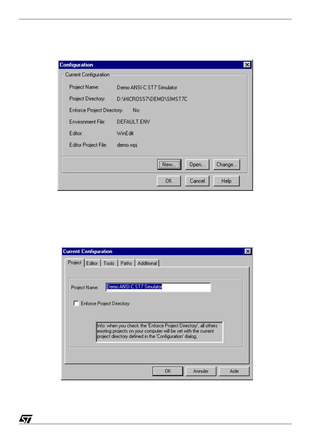This box allows you to create a project configuration, open an existing one, or change the cur-