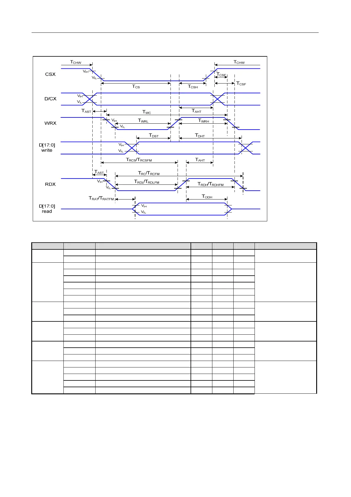 8.1 Parallel interface characteristics: 18, 16, 9 or 8-bit bus (8080 series MCU interface)