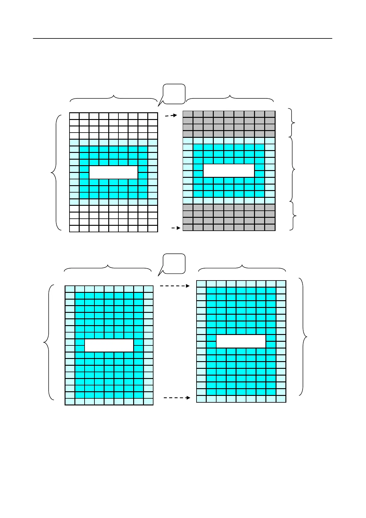 A1h is displayed. To display a dot on leftmost top corner, store the dot data at (column pointer, row pointer) = (0, 0)