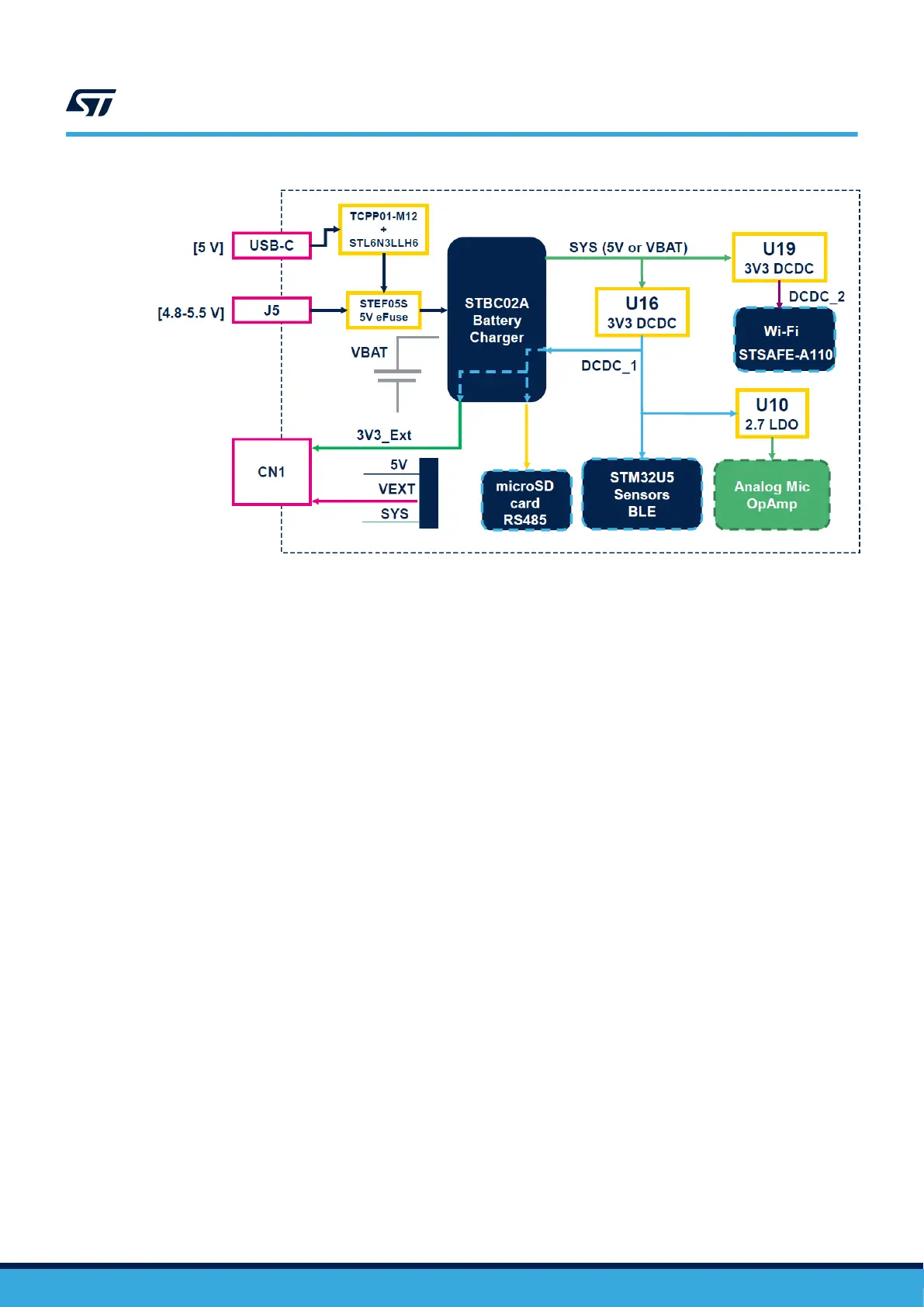 The STWIN.box features several test points and jumpers to monitor the electrical performance of the running