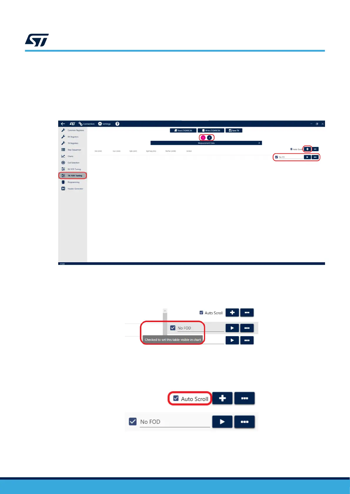 To start the tuning process, head to the TX FOD tuning tab of the GUI. To add a new data set, press the '+' button