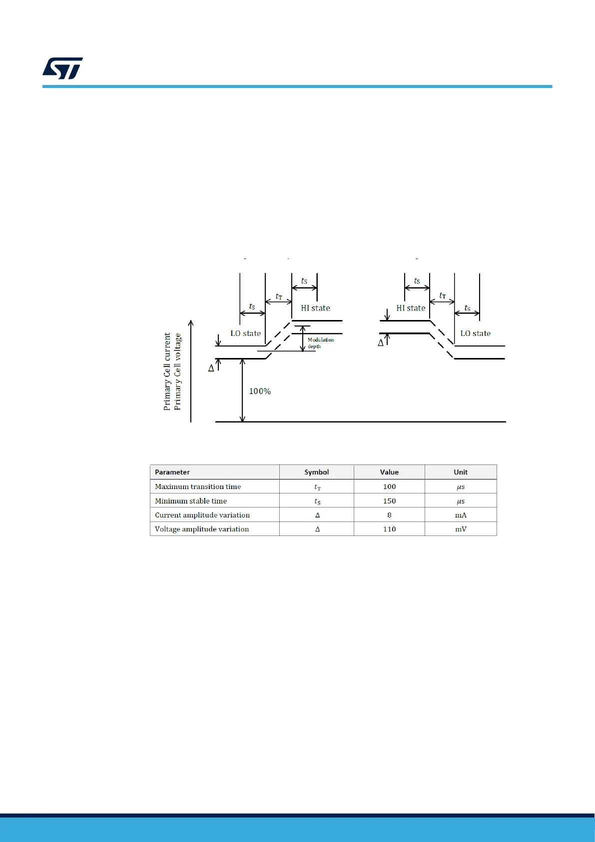 • The difference of the transmitter coil current in the high and low state is at least 15 mA. The transmitter coil