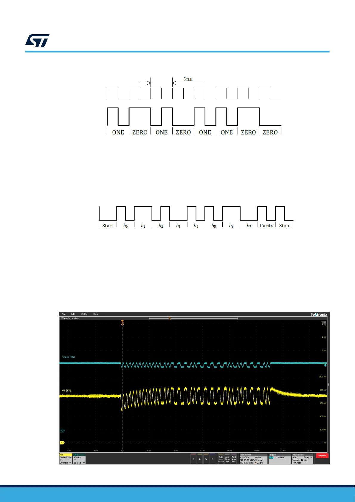 START bit (ZERO), the 8 data bits of the byte (LSB first), a parity bit and a STOP bit (ONE). The parity is odd,