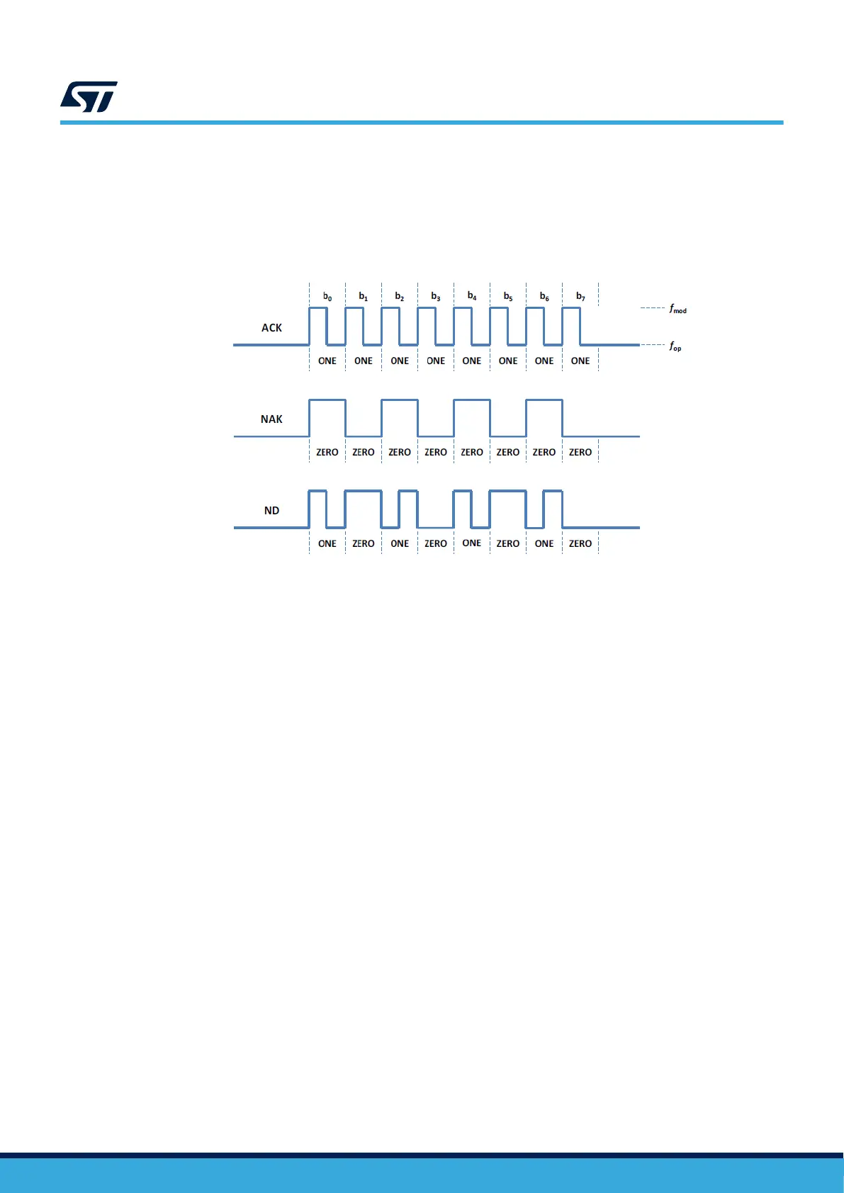 a series of 8 ONE bits, NACK is encoded as 8 zero bits and ND is encoded as a series of 8 bits of alternating