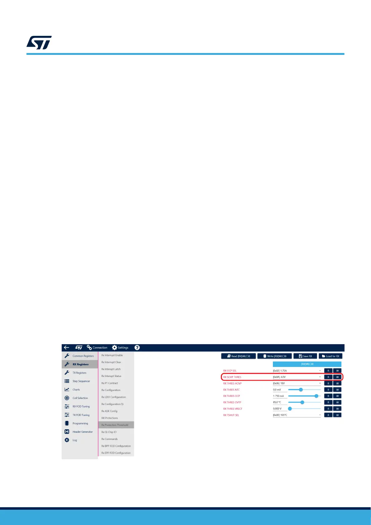 The SOVP threshold is programmable from 2 V to 5 V in step sizes of 0.2 V. It can be set by STSW-WPSTUDIO