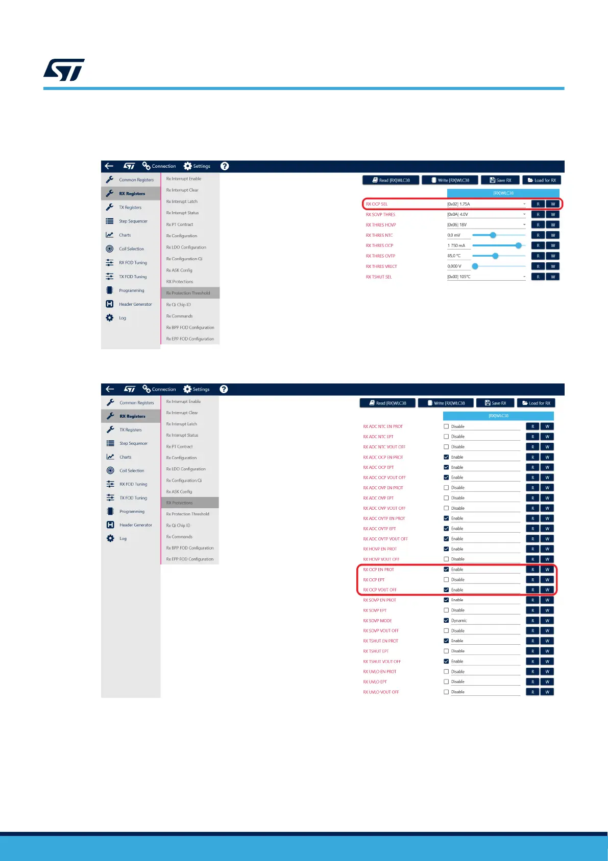 Figure 25. Hardware overcurrent Rx protection selection