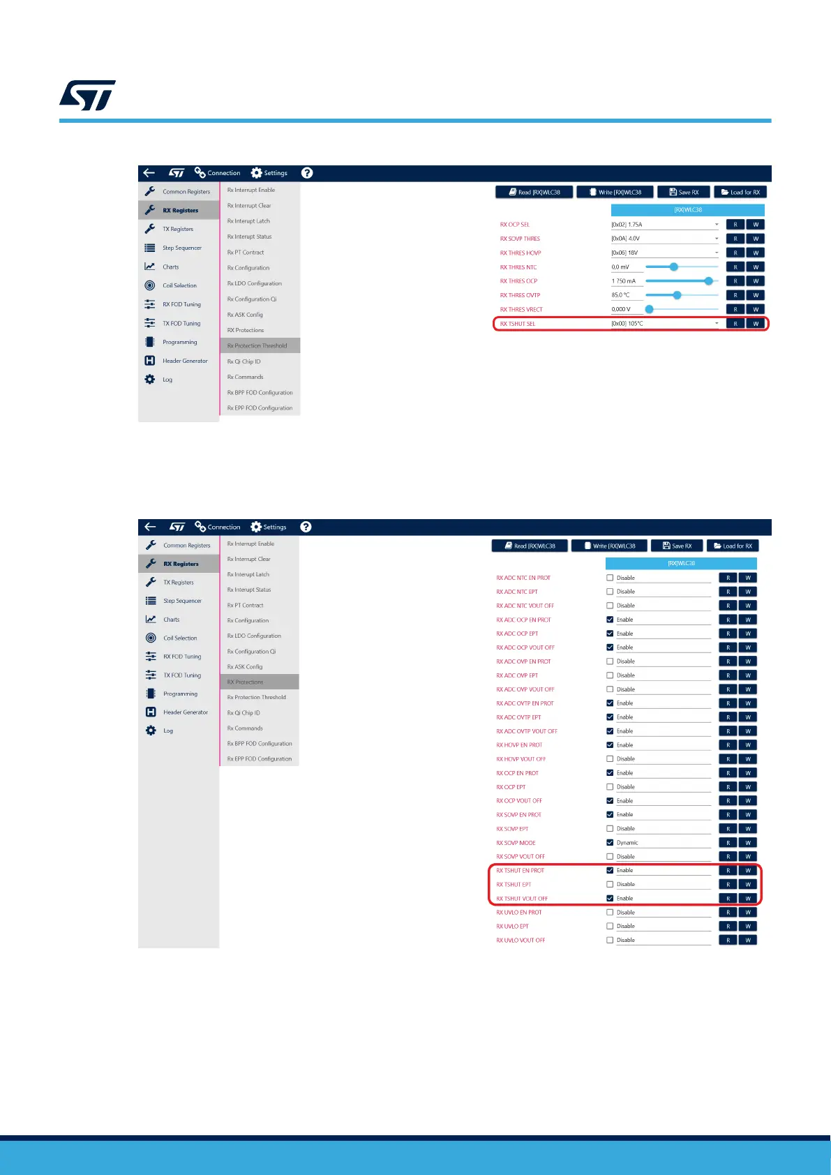 ST STEVAL-WLC38RX - Figure 28. Hardware Overtemperature Rx Protection Threshold Setting; Figure 29. Hardware Overtemperature Rx Protection Settings