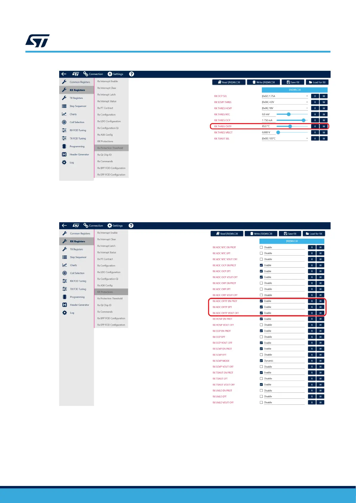 Figure 31. Firmware overtemperature Rx protection settings