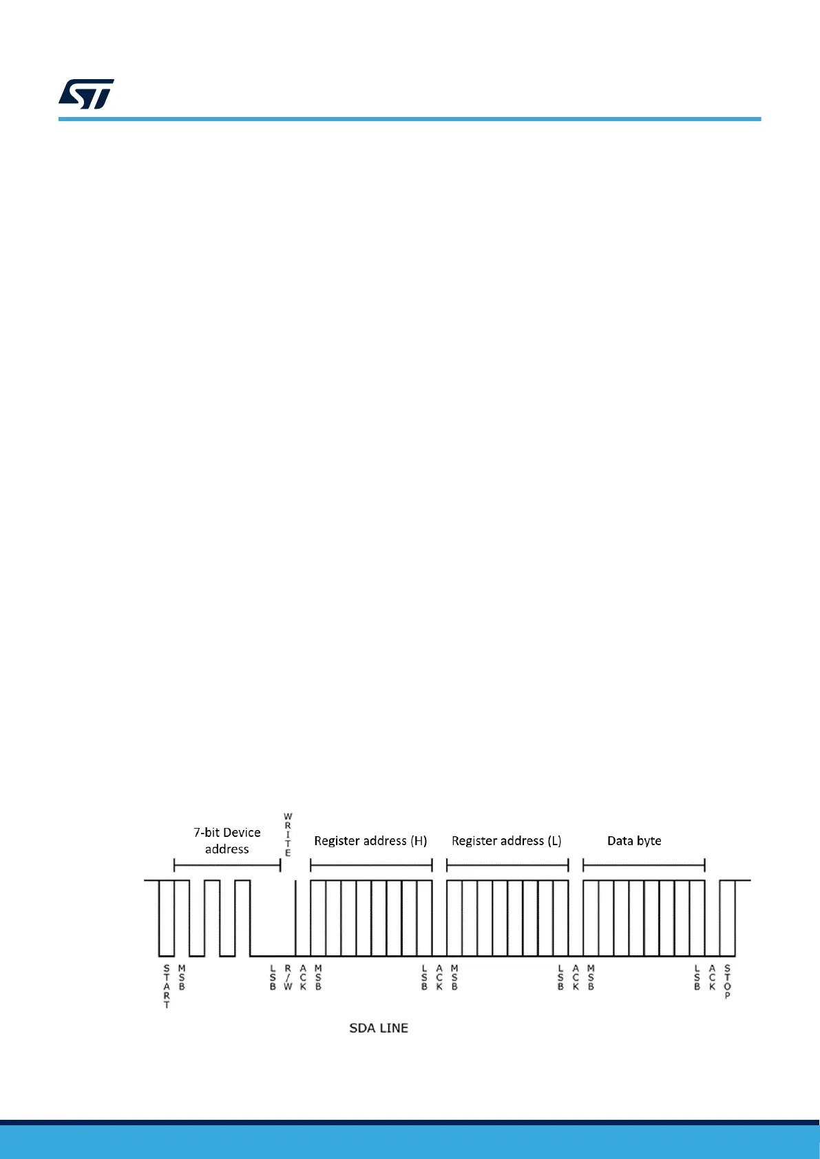 register. Each transmitted byte is acknowledged by the STWLC38 through an ACK pulse.