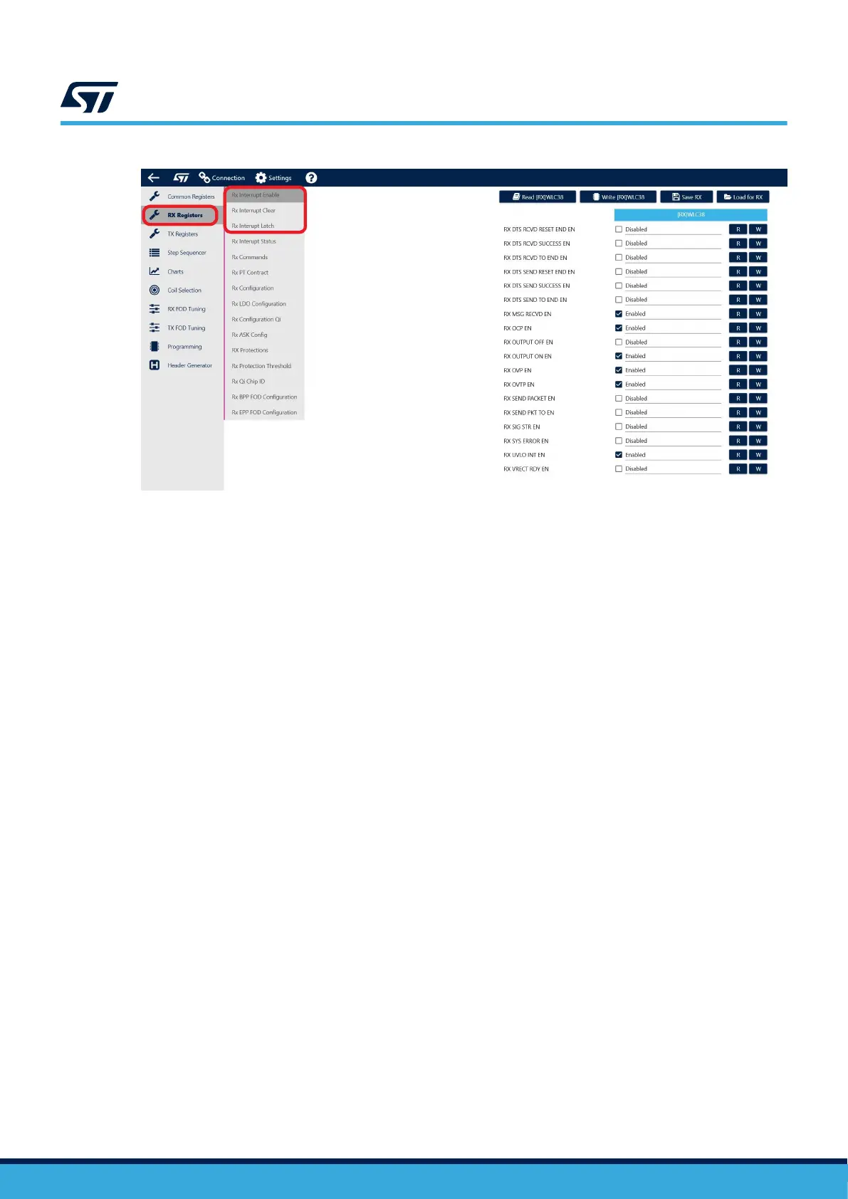 ST STEVAL-WLC38RX - Figure 47. Interrupt Register Settings
