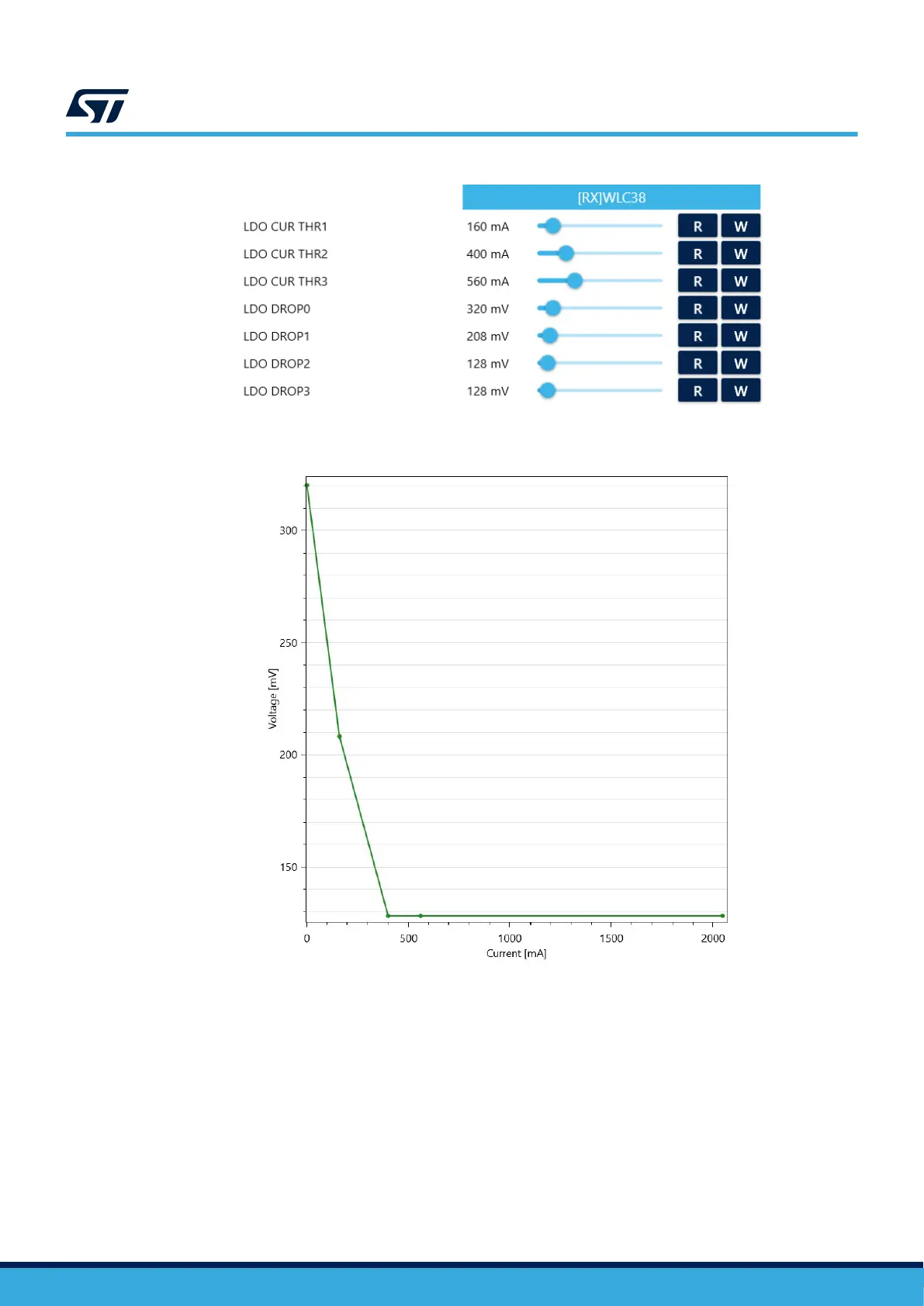 ST STEVAL-WLC38RX - Figure 65. Default LDO Configuration; Figure 66. Default LDO Drop Curve