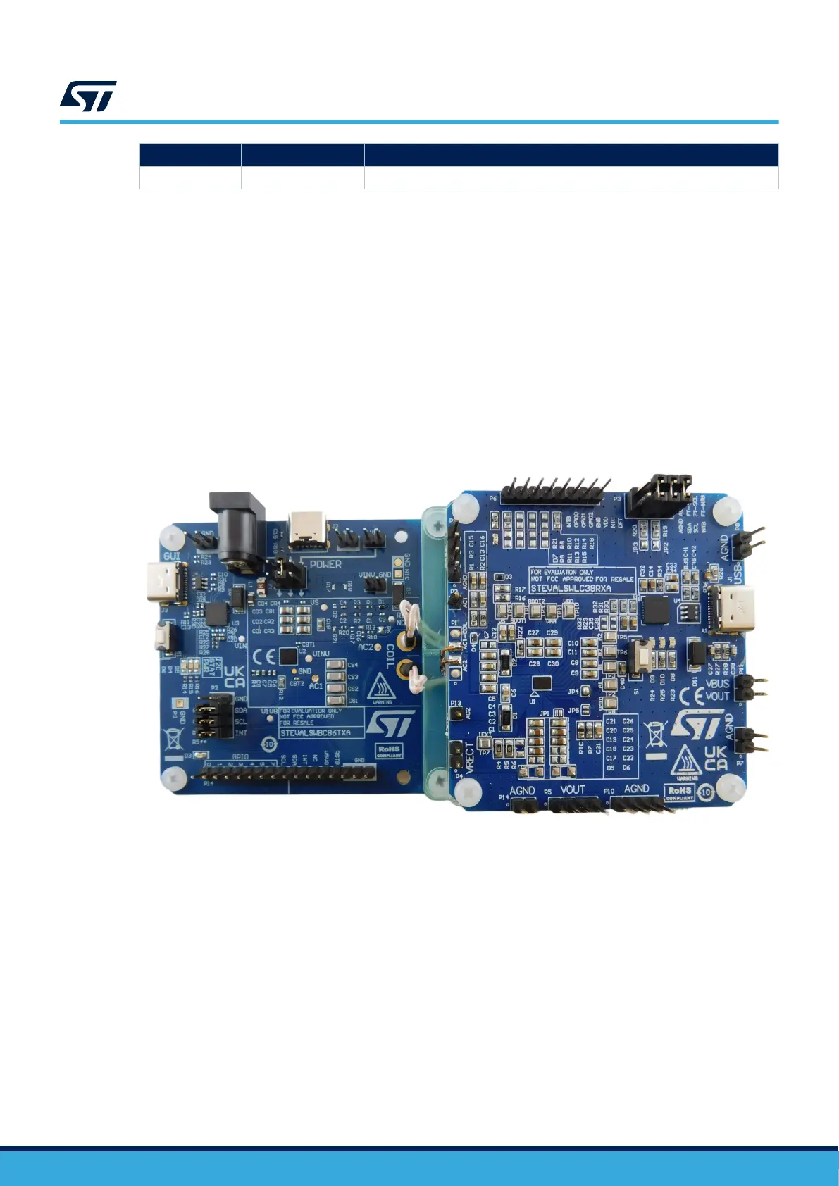 connector (J1). LED D9 (YELLOW) indicates that STWLC38 is connected to the GUI. LED D10 (GREEN)