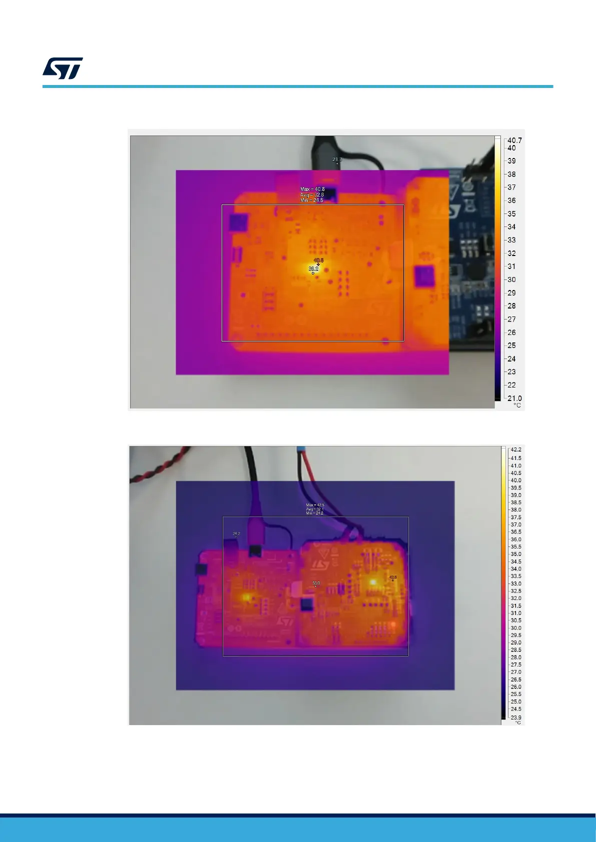 ST STEVAL-WLC38RX - Figure 79. Maximum Temperature of the Board after 2 Hours (40.8⁰C) - 5 W Power Transfer STEVAL-WLC38 RX; Figure 80. Maximum Temperature of the Board after 2 Hours (42.5⁰C) - 5 W Power Transfer