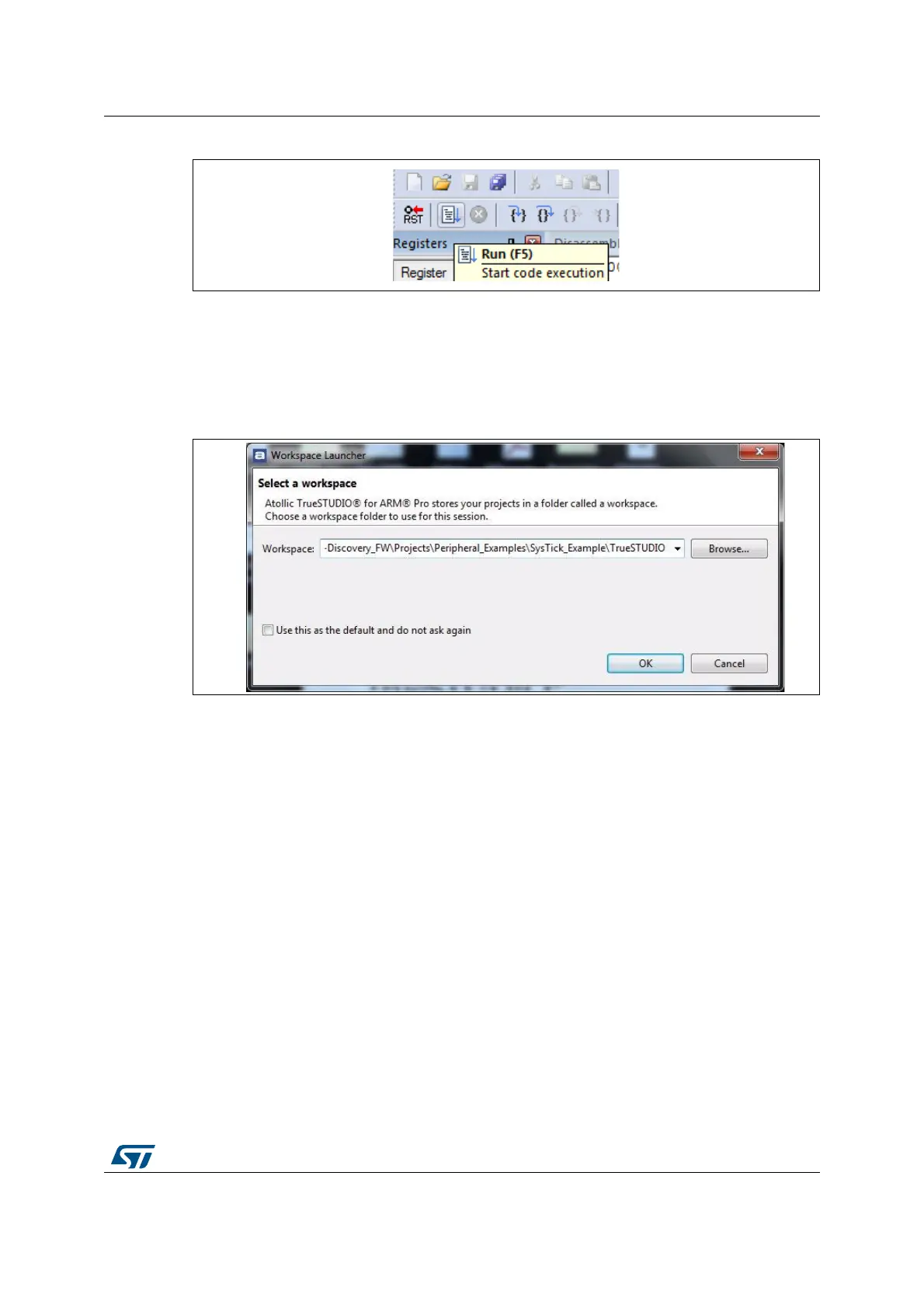1. Open the Atollic TrueSTUDIO® for ARM product. The program launches and prompts