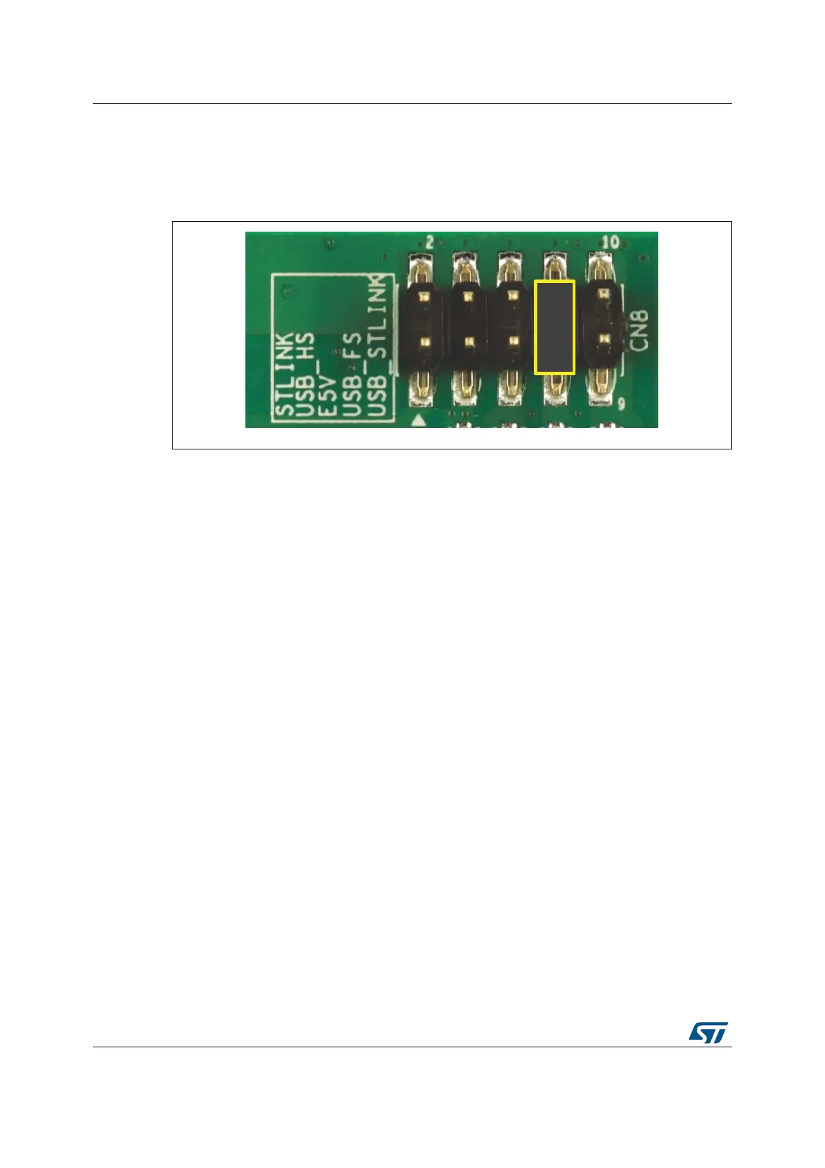 1. Connect the jumper CN8 on (E5V) or (USB_HS) or (USB_FS)