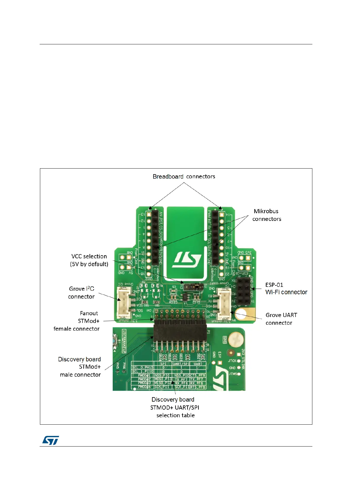 It is connected to STMod+ connector (P1) and it provides access to: