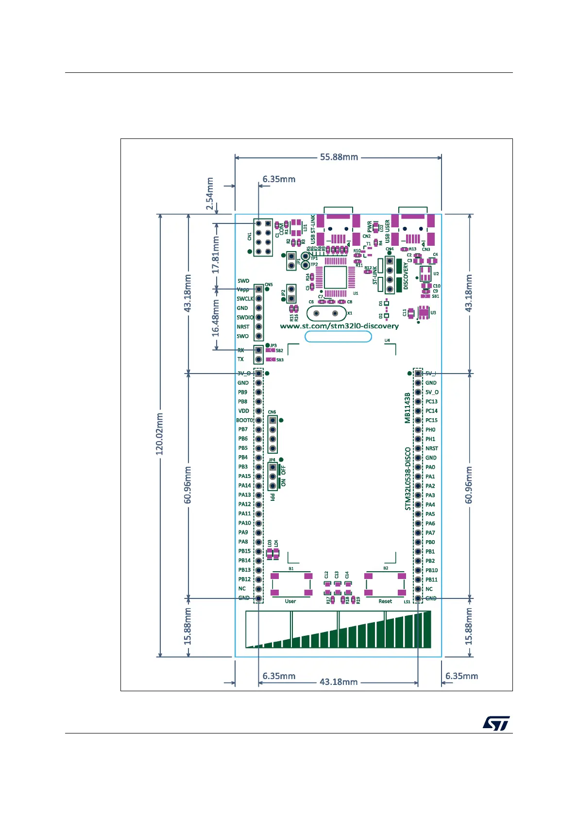 Figure 12. STM32L053 Discovery board mechanical drawing