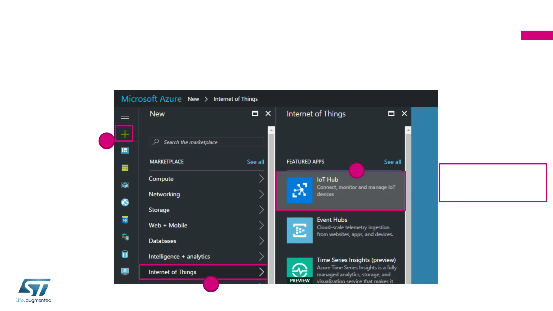In the left jump-bar, click on + Internet of Things IoT Hub