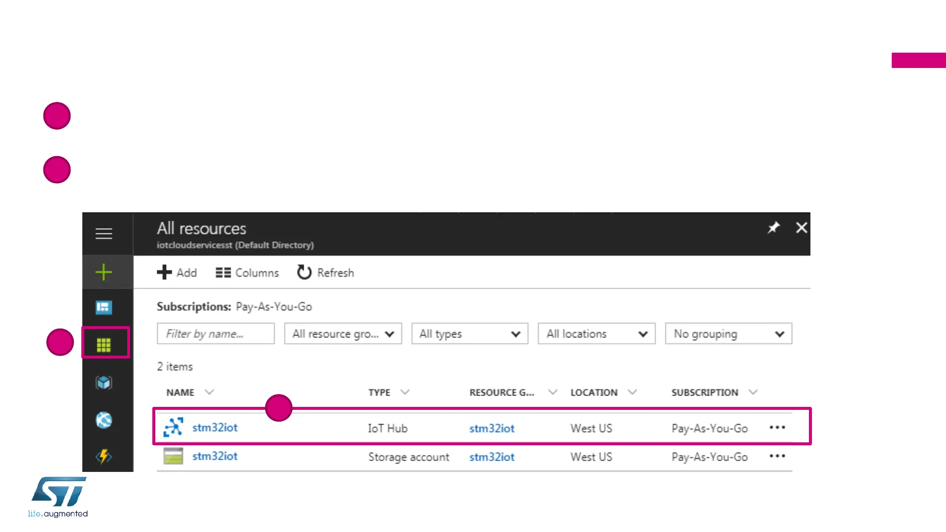 Click on the IoT Hub just created from the list of resources in the left jump bar